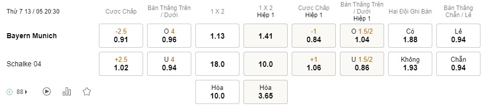 Tỉ lệ kèo Bayern vs Schalke