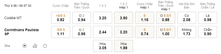 Tỉ lệ kèo Cuiaba vs Corinthians
