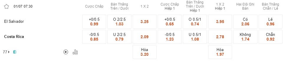 Tỉ lệ kèo El Savaldor vs Costa Rica