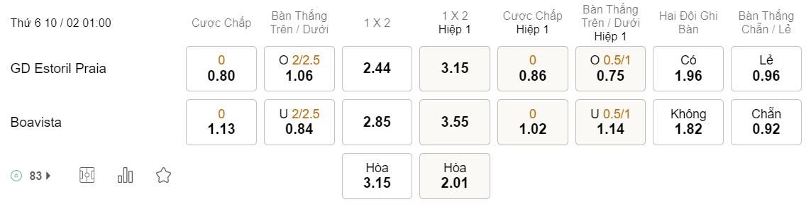 Soi kèo hiệp 1 Estoril vs Boavista: 0.86*0*1.02