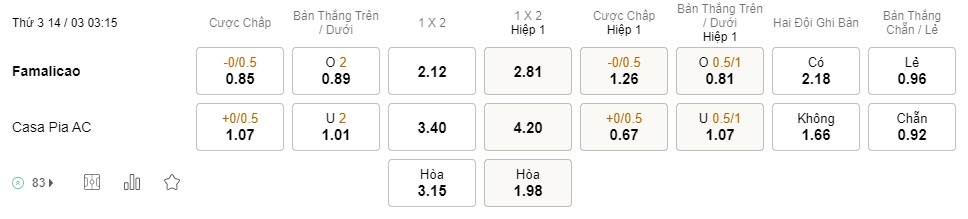 Soi kèo hiệp 1 Famalicao vs Casa Pia: 1.26*0/0.5*0.67