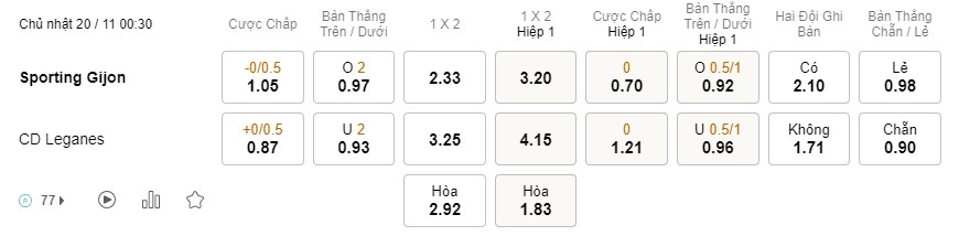 Soi kèo châu Á Gijon vs Leganes: 1.05*0/0.5*0.87