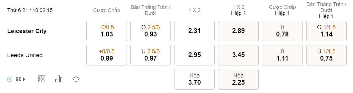 Tỉ lệ kèo Leicester vs Leeds