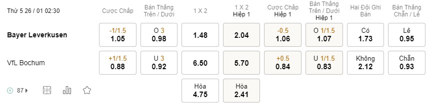 Tỉ lệ kèo Leverkusen vs Bochum