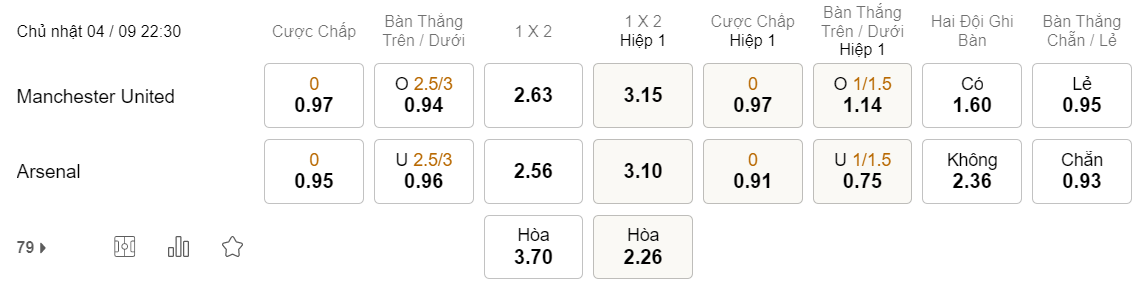 Tỉ lệ kèo MU vs Arsenal