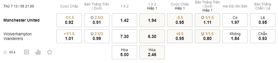 Soi kèo hiệp 1 MU vs Wolves: 0.95*0.5*0.95