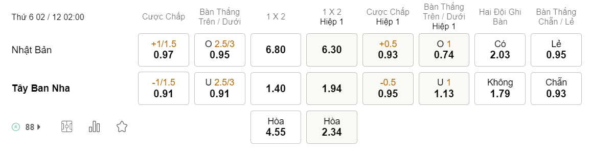 Soi kèo châu Á Nhật Bản vs Tây Ban Nha: 0.97*1/1.5*0.91