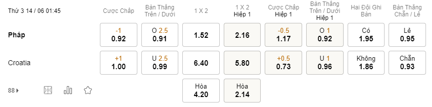 Tỉ lệ kèo Pháp vs Croatia