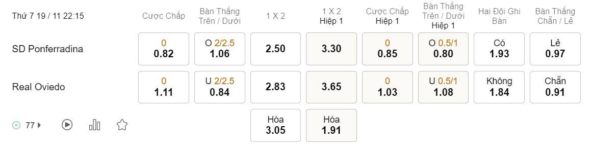 Tỉ lệ kèo Ponferradina vs Oviedo