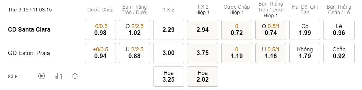Soi kèo hiệp 1 Santa Clara vs Estoril: 0.72*0*1.19