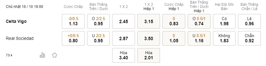 Soi kèo hiệp 1 Sociedad vs Villarreal: 0.83*0*1.05