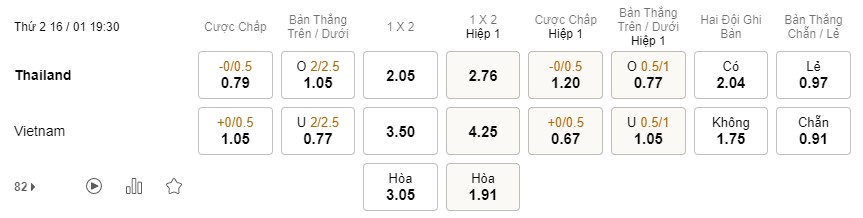Tỉ lệ kèo Thái Lan vs Việt Nam