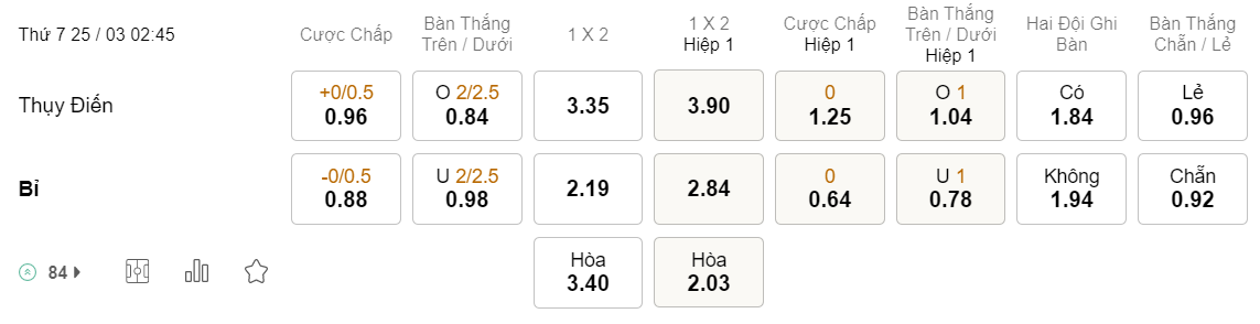 Theo thống kê, 5/6 lần gần nhất Thụy Điển đối đầu với Bỉ đã chứng kiến nhiều nhất chỉ 2 bàn thắng được ghi mỗi 90 phút. Vì lẽ đó, các chuyên gia của Vebo TV nhận định tỉ lệ nổ Xỉu sẽ là cao hơn.